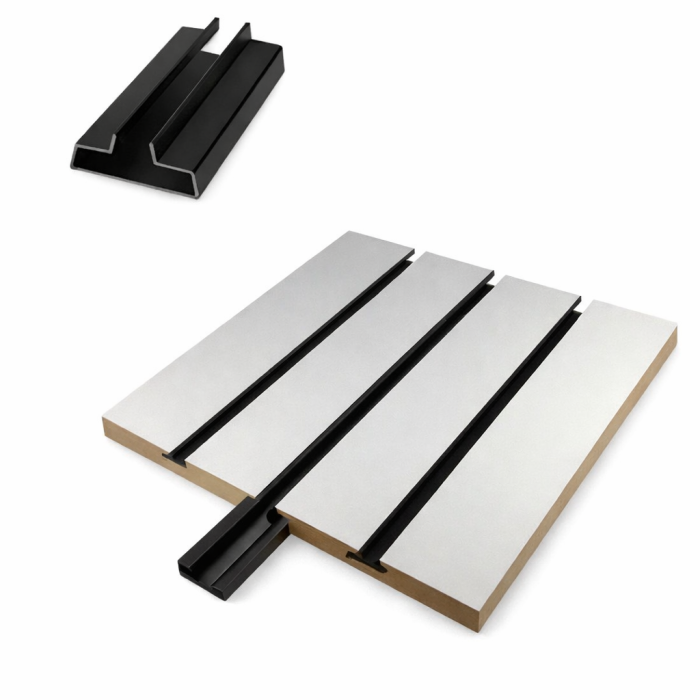 Metal T-slot inserts for Slat Wall. These metal inserts provide edge protection and create a more finished look for your slatwall panels as well as increase the strength of the board. If you are stacking the boards one on top of the other (not side by side) you will need one more t-slot for the groove that is created between the two boards.